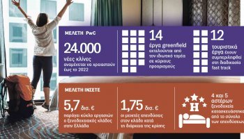 Την ίδια περίοδο, οι απασχολούμενοι στον κλάδο της εστίασης σημείωσαν αύξηση κατά 34% (από 63 χιλ. το 2013 σε 84 χιλ. το 2018) ενώ οι απασχολούμενοι στα καταλύματα αύξηση κατά 57% (από 9 χιλ. σε 14 χιλ.).