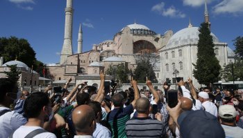 Την 24η Νοεμβρίου 1934 ο Μουσταφά Κεμάλ, ο ιδρυτής της πολύ νεαρής Τουρκικής Δημοκρατίας, μετέτρεπε την πρώην βασιλική, τότε ισλαμικό τέμενος, σε μουσείο, όμως «86 χρόνια αργότερα, τη 10η Ιουλίου 2020, ο πρόεδρος Ρετζέπ Ταγίπ Ερντογάν, έκανε το κόσμημα της Κωνσταντινούπολης μουσουλμανικό χώρο λατρείας, προς μέγιστη ικανοποίηση της πιο συντηρητικής θρησκευτικής μερίδας του εκλογικού του ακροατηρίου και των συμμάχων στην άκρα δεξιά» της Τουρκίας, σχολίασε στο δικό της ρεπορτάζ η εφημερίδα Le Monde.