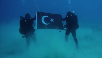 Εκεί λοιπόν οι Τούρκοι δύτες των ειδικών δυνάμεων SAS φωτογραφήθηκαν κρατώντας την τουρκική σημαία στον βυθό του κόλπου της Σούδας.