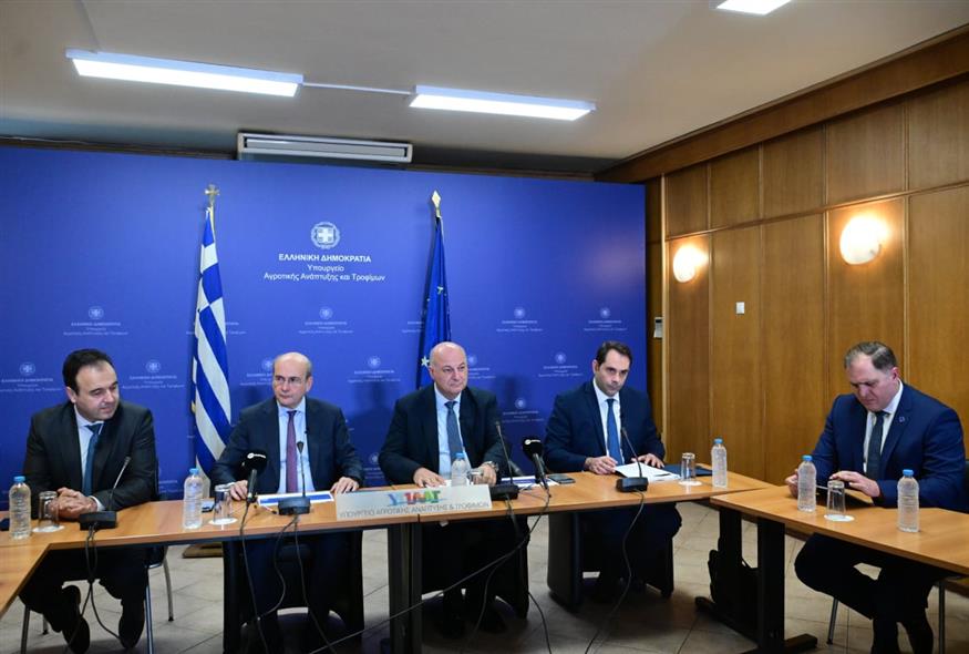 Τις κυβερνητικές παρεμβάσεις για τη στήριξη του πρωτογενούς τομέα παρουσίασαν ο αντιπρόεδρος της κυβέρνησης Κωστής Χατζηδάκης, ο υπουργός Αγροτικής Ανάπτυξης και Τροφίμων Κώστας Τσιάρας, ο υπουργός Ψηφιακής Διακυβέρνησης Δημήτρης Παπαστεργίου και ο υφυπουργός Εθνικής Οικονομίας και Οικονομικών Θάνος Πετραλιάς.