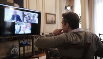 Τηλεδιάσκεψη με στελέχη των Μονάδων Εντατικής Θεραπείας πέντε μεγάλων δημόσιων νοσοκομείων, τον Απόστολο Αρμαγανίδη από το «Αττικόν», την Αναστασία Κοτανίδου από τον «Ευαγγελισμό», την Αντωνία Κουτσούκου από το νοσοκομείο «Η Σωτηρία», την Ελένη Γκέκα από το ΑΧΕΠΑ και τη Μηλίτσα Μπιτζάνη από το «Γ. Παπανικολάου» της Θεσσαλονίκης, είχε το απόγευμα της Τρίτης ο πρωθυπουργός Κυριάκος Μητσοτάκης.