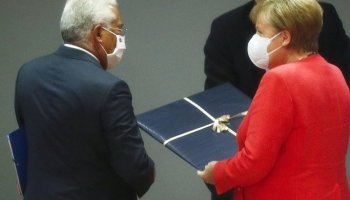 Άλλοι όπως η Γερμανίδα Καγκελάριος, Άνγκελα Μέρκελ, ο Γάλλος πρόεδρος, Εμανουέλ Μακρόν, η πρόεδρος της Κομισιόν, Ούρσουλα Φον ντερ Λάιεν, ο πρόεδρος του Ευρωπαϊκού Συμβουλίου, Σαρλ Μισέλ, επέλεξαν τις κλασικές λευκές μάσκες.