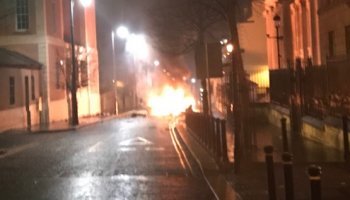Αυτοσχέδιες εμπρηστικές βόμβες ρίχθηκαν, μετέδωσε το βρετανικό πρακτορείο ειδήσεων Press Association. Το πρακτορείο μετέδωσε εξάλλου φωτογραφίες που εικονίζουν καμένα αυτοκίνητα και βαριά οπλισμένους αστυνομικούς κοντά στο σημείο όπου σημειώθηκε η επίθεση.