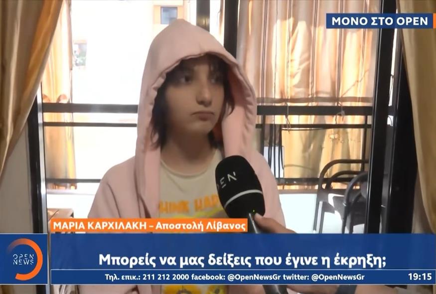 Πιο αναλυτικά, η μικρή Μάγια μιλώντας αποκλειστικά στην Μαρία Καρχιλάκη περιέγραψε τις πρώτες στιγμές των ισραηλινών βομβαρδισμών στο κέντρο της Βηρυτού. «Βασικά εγώ κοιμόμουν. Ξαφνικά η μητέρα μου με ξύπνησε, με άρπαξε και κατόπιν βομβάρδισαν το διαμέρισμα. Η μητέρα μου άκουσε πρώτη την έκρηξη», είπε.