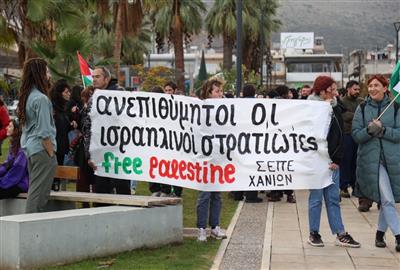 Διαδηλωτές μαζεύτηκαν στο λιμάνι της Σούδας για να «υποδεχθούν» το διαβόητο Crown Iris, με δυνάμεις της αστυνομίας να επιχειρούν να τους απωθήσουν