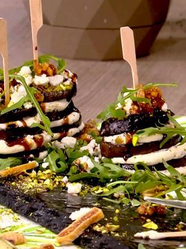Πυργάκια μελιτζάνας με μους κατσικίσιου τυριού