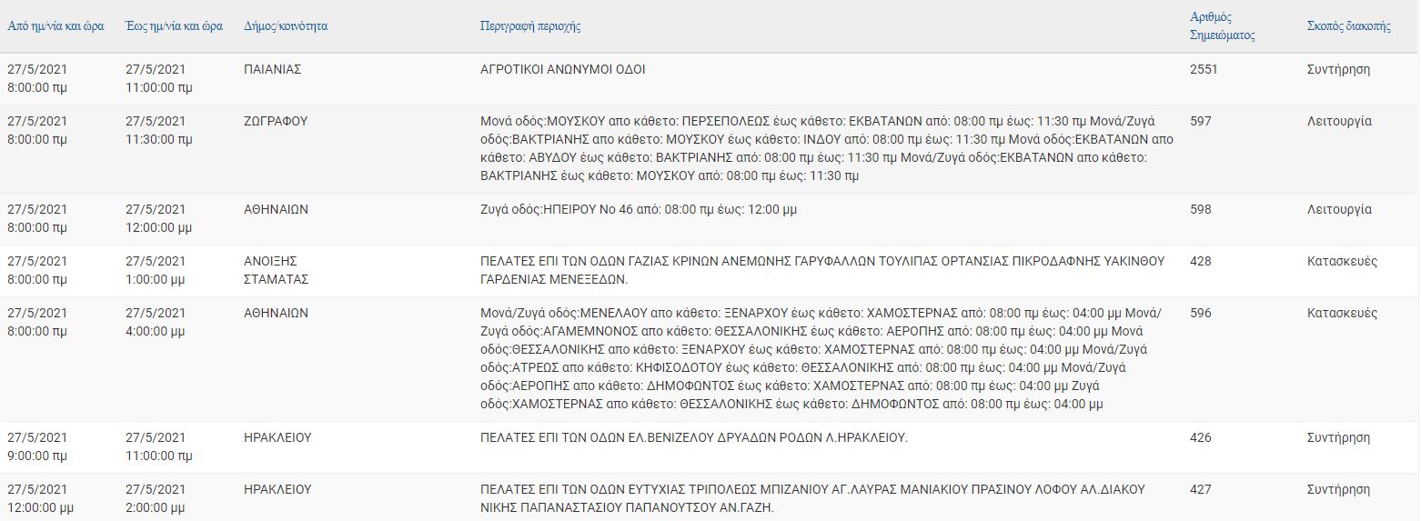 Διακοπή ρεύματος έχει προγραμματίσει για σήμερα, Πέμπτη 27 Μαΐου, η ΔΕΔΔΗΕ σε αρκετές περιοχές της Αττικής στις οποίες περιλαμβάνονται, μεταξύ άλλων, κέντρο Αθήνας, Ιλιον, Κερατσίνι, Ζωγράφου, Ηράκλειο.