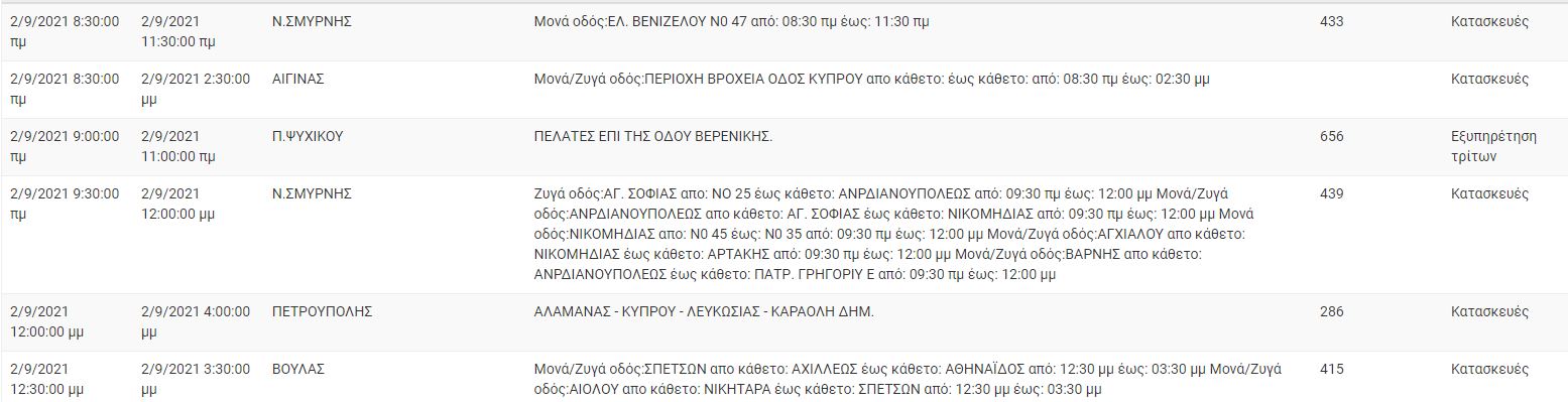 Διακοπή ρεύματος έχει προγραμματίσει για σήμερα, Πέμπτη, 2 Σεπτεμβρίου, ο ΔΕΔΔΗΕ, σε αρκετές περιοχές της Αττικής, στις οποίες περιλαμβάνονται το κέντρο της Αθήνας, η Γλυφάδα αλλά και η Νέα Σμύρνη.