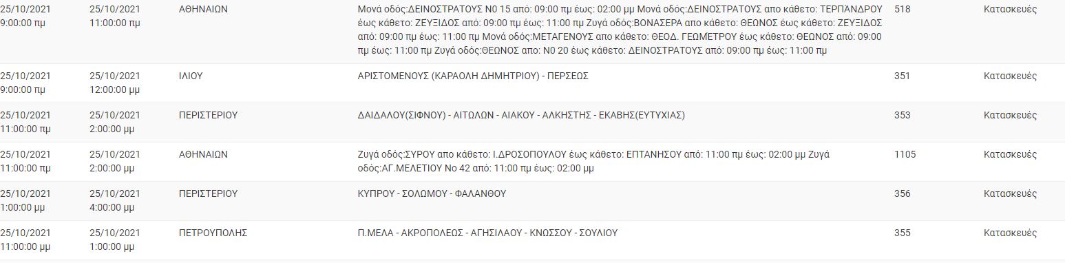 Διακοπή ρεύματος έχει προγραμματίσει για σήμερα, Δευτέρα, 25 Οκτωβρίου, ο ΔΕΔΔΗΕ, σε αρκετές περιοχές της Αττικής, στις οποίες περιλαμβάνονται το Περιστέρι, η Πετρούπολη, το Ίλιον και το κέντρο της Αθήνας.