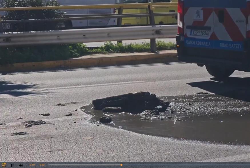 Συγγρού: Άνοιξε τρύπα στο οδόστρωμα - Έσπασε αγωγός, έκλεισε η μεσαία λωρίδα