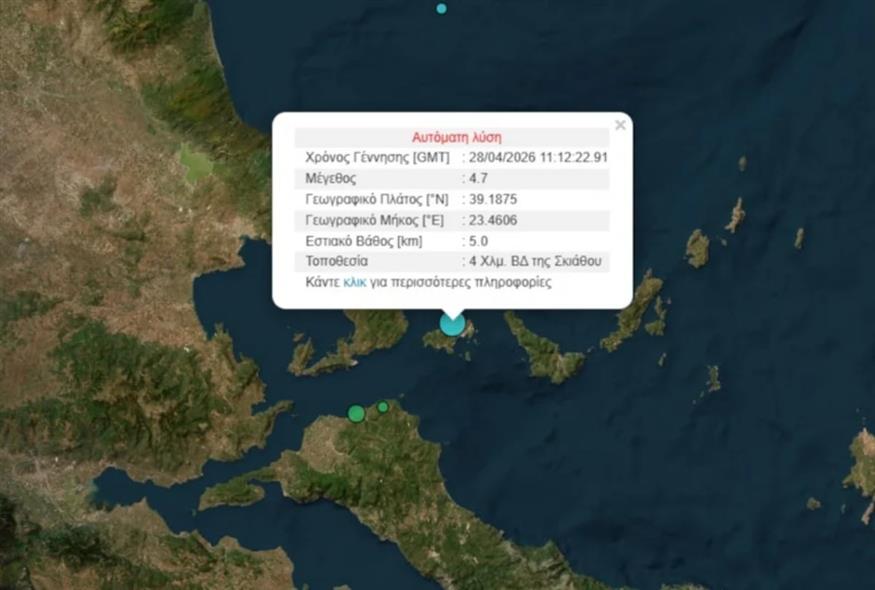 Σεισμός 4,7 Ρίχτερ τώρα στη Σκιάθο