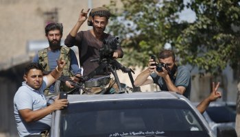 «Προς τα πού πηγαίνετε;» ρωτά η δημοσιογράφος για να της απαντήσει ο οδηγός του τεθωρακισμένου «Όπου υπάρχει το φως του Ισλάμ».