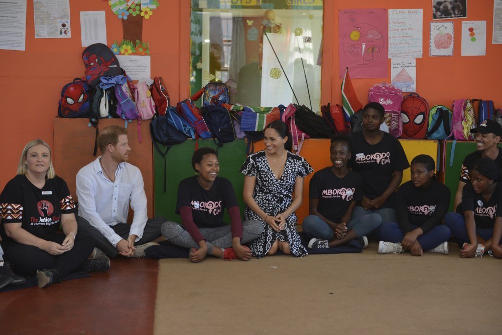 Το ζευγάρι μετέβη το μεσημέρι σε μια παραγκούπολη του Κέιπ Τάουν και παρακολούθησε ένα κοινοτικό πρόγραμμα αυτοάμυνας κοριτσιών, καθώς η Νότια Αφρική μαστίζεται από τη βία.