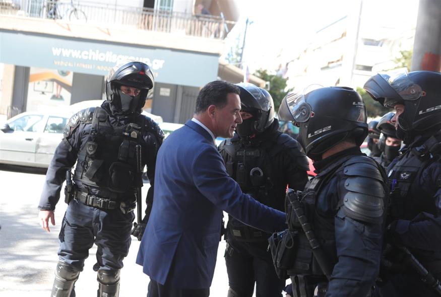 Ο Άδωνις Γεωργιάδης με αστυνομικούς (ΣΩΤΗΡΗΣ ΔΗΜΗΤΡΟΠΟΥΛΟΣ/EUROKINISSI)