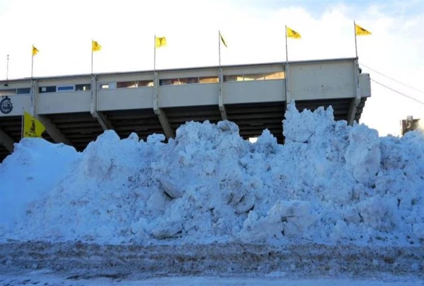 Οι έντονες χιονοπτώσεις των προηγούμενων ημερών είχαν καλύψει πλήρως τον συνθετικό χλοοτάπητα, δημιουργώντας συνθήκες που καθιστούσαν αδύνατη οποιαδήποτε αγωνιστική δραστηριότητα. Για τον λόγο αυτό στήθηκε εκτεταμένη επιχείρηση αποχιονισμού, με τη συμμετοχή δεκάδων εργαζομένων και βαρέος εξοπλισμού, ώστε να καθαριστεί τόσο το τερέν όσο και οι περιμετρικοί χώροι.