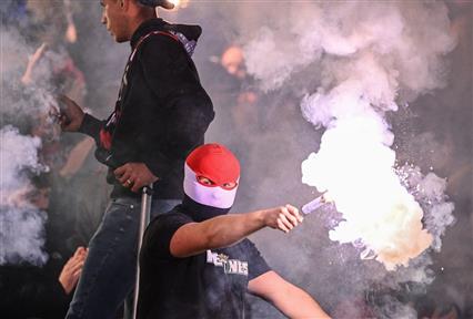 Συγγενείς των 424 προσαχθέντων για τον τραυματισμό αστυνομικού από ναυτική φωτοβολίδα αστυνοξικός σε αγώνα του Ολυμπιακού και του Παναθηναϊκού για το λιγκ καπ του βόλεϊ, έχουν συγκεντρωθεί από νωρίς το πρωί έξω από το Αλλοδαπών στην Πέτρου Ράλλη