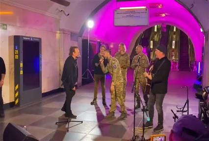 Ο Μπόνο και ο κιθαρίστας των U2 «έπαιξαν» στο μετρό του Κιέβου σε μία συναυλία - έκπληξη