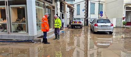 Κάτοικοι και επαγγελματίες περιγράφουν εικόνες που «θύμιζαν ποτάμι», δίνοντας μάχη για να περιορίσουν τις ζημιές και να απομακρύνουν νερά και λάσπες από τις περιουσίες τους
