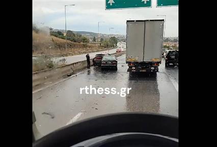 Στο σημείο η κυκλοφορία των οχημάτων διεξάγεται μόνο από τη μεσαία λωρίδα, ενώ έχει δημιουργηθεί μεγάλο μποτιλιάρισμα.