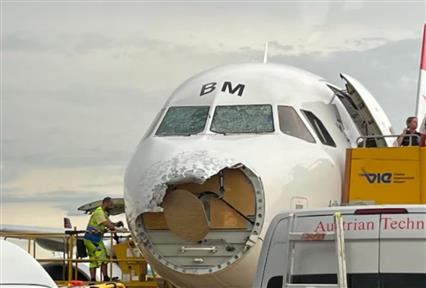 Τρόμος σε πτήση: Σοβαρές ζημιές από χαλάζι σε αεροσκάφος – Εξαφανίστηκε το ρύγχος του!