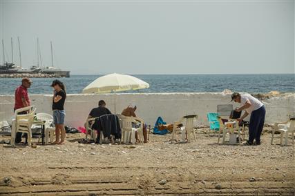 Τα μανιασμένα κύματα από τους θυελλώδεις ανέμους που έπνεαν στην περιοχή γέμισαν την ακτή με αφρό
