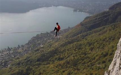 Ο σχοινοβάτης, περπάτησε στα 700 μέτρα πάνω από τη λίμνη Annecy