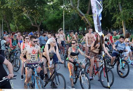 Οι γυμνοί ποδηλάτες βγήκαν ξανά στους δρόμους της Θεσσαλονίκης: Όσα έγιναν στην 16η Διεθνή Γυμνή Ποδηλατοδρομία