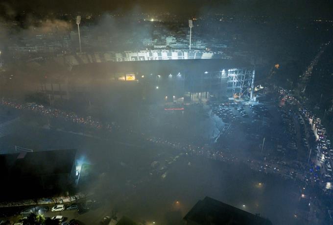 Όταν περνούσαν οι τέσσερις νεκροφόρες, χιλιάδες φίλοι του ΠΑΟΚ άναβαν πυρσούς και ξεσπούσαν σε θερμά χειροκροτήματα