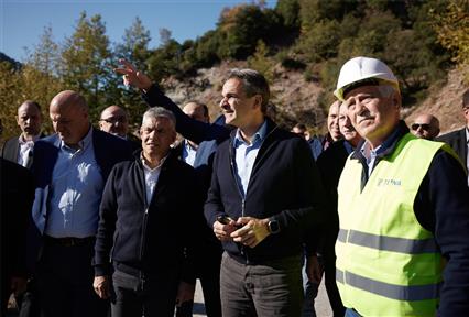 Ο κ. Μητσοτάκης ενημερώθηκε από τους αρμόδιους για την εξέλιξη των έργων, τα οποία υλοποιούνται σε 14 σημεία κατά μήκος του οδικού δικτύου