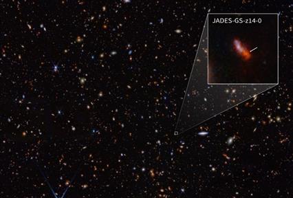 Το φως του γαλαξία JADES-GS-z14-0 χρειάστηκε 13,5 δισεκατομμύρια χρόνια για να φτάσει μέχρι τη Γη.