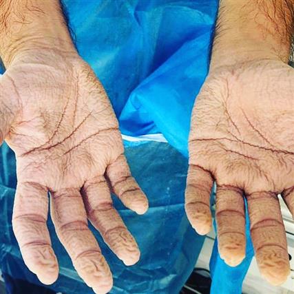 Τεστ κορονοϊού: Τα ζαρωμένα χέρια νοσηλευτή μετά από 8 ώρες - Συγκλονιστική εικόνα