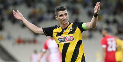 Η συμβολική κίνηση του Κώστα Γαλανόπουλου και το «Μ» του Πέτρου Μάνταλου μπροστά σε μια εξέδρα που έκανε έρανο για τους συλληφθέντες Κροάτες οπαδούς