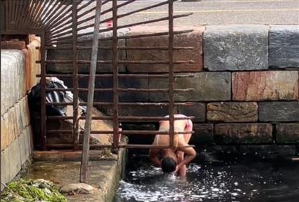 Νεαρός πέταξε νερό και σχηματίστηκε ένα εντυπωσιακό σχέδιο στην επιφάνεια του νερού
