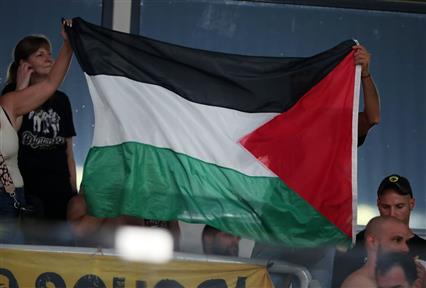 Συνθήματα ακούστηκαν σε όλο το γήπεδο με τους φιλάθλους να φωνάζουν «Με την Παλαιστίνη έως τη Λευτεριά»
