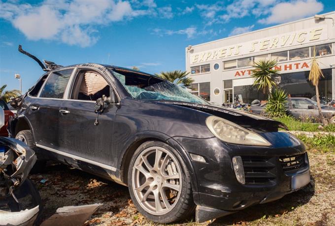 Ο ανεμοστρόβιλος ανατρέπει σαν καρυδότσουφλό το αυτοκίνητο και το αφήνει αναποδογυρισμένο πάνω στο δρόμο