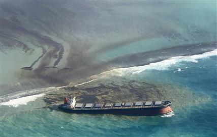Ο ιστός της γέφυρας στέκει αγέρωχος τρία μέτρα πάνω από τη θάλασσα για να θυμίζει την πορεία ενός πλοίου 200 μέτρων που συντηρήθηκε πλημμελώς και βυθίστηκε προκαλώντας τεράστια ρύπανση