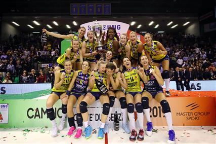 Οι παίκτριες της ιταλικής Κονελιάνο τα πέταξαν όλα και έμειναν με την κούπα στα αποδυτήρια της ομάδας τους μετά την επικράτηση «θρίλερ» επί της Νοβάρα