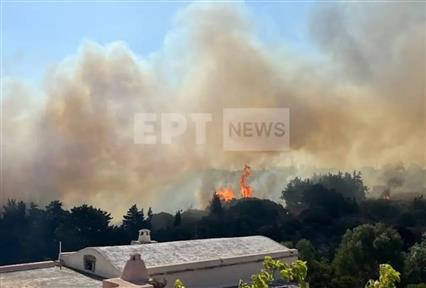 Οι πυροσβέστες καταβάλλουν υπεράνθρωπη προσπάθεια να ανακόψουν την πορεία της φωτιάς πριν φτάσει σε κατοικημένες περιοχές