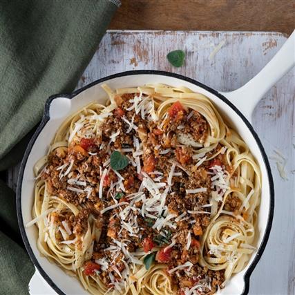 Συνταγή για τη λατρεμένη των πιτσιρικιών και μία από τις πιο δημοφιλείς μακαρονάδες στην Ελλάδα. Ταλιατέλες με σάλτσα από κιμά και λαχανικά.