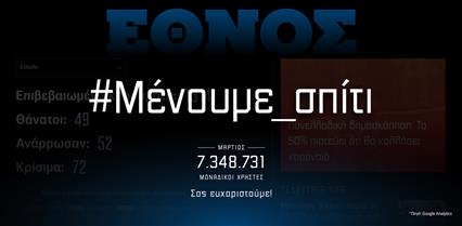 #Μένουμε_σπίτι με ethnos.gr: 7.348.731 «ευχαριστώ» για το ρεκόρ επισκεψιμότητας